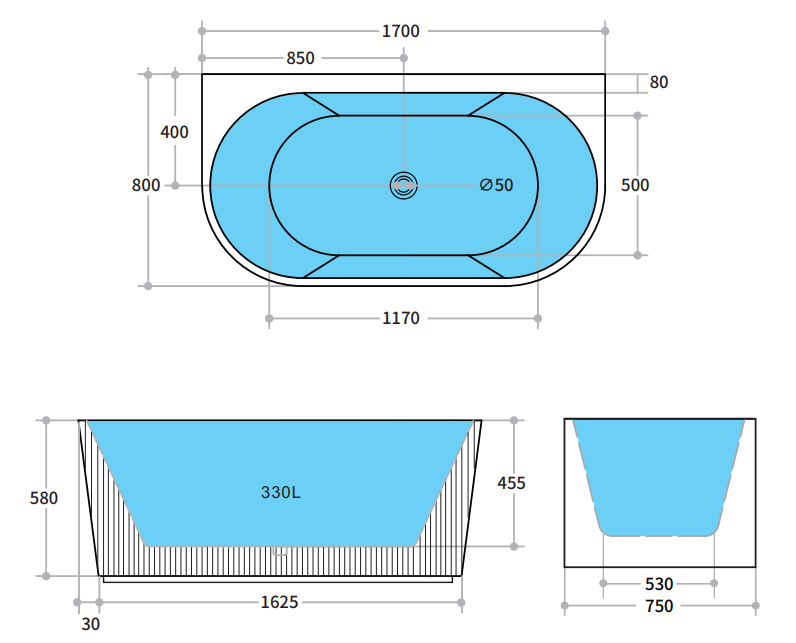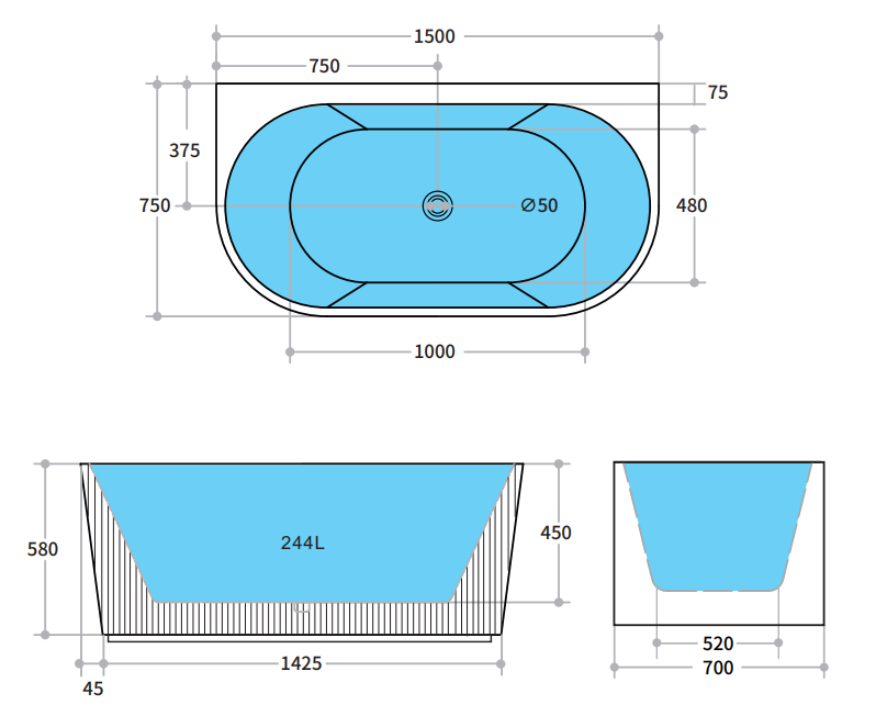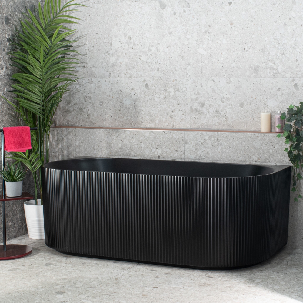 BRIGHTON Fluted Back to Wall Bath - Matt Black