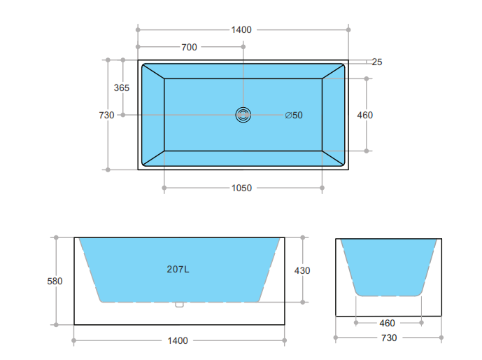 1400 x 730 x 580
