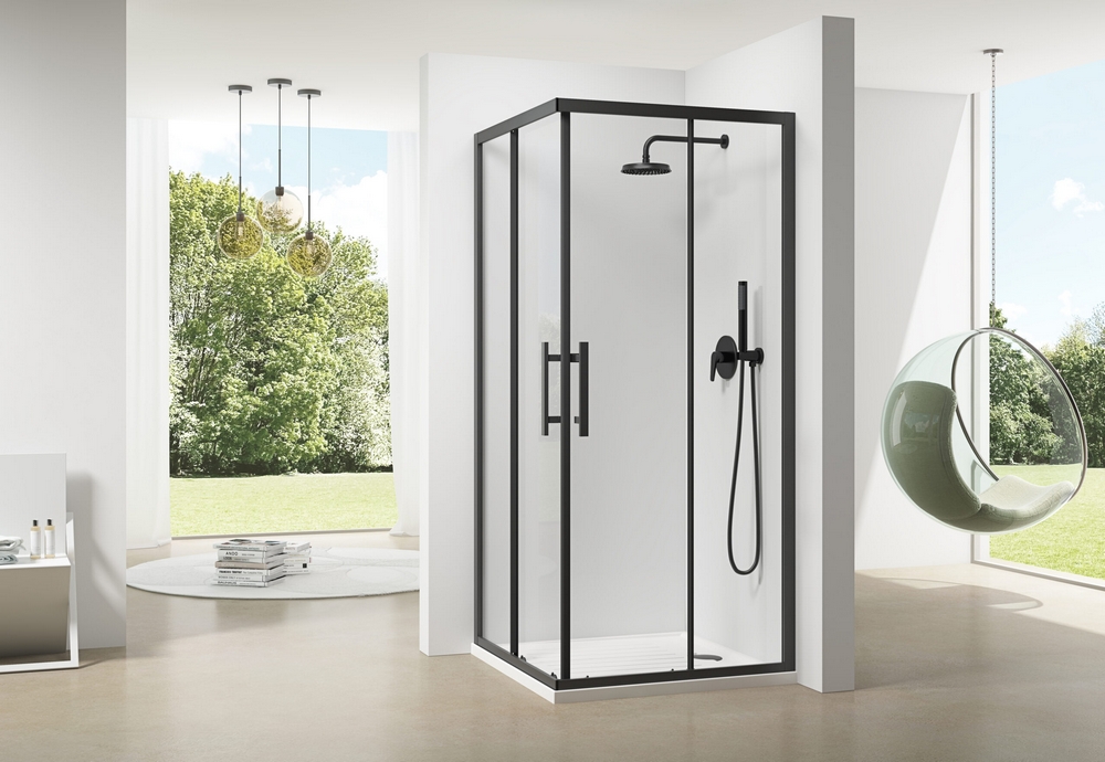 Louve Corner Slider Black Shower Screen