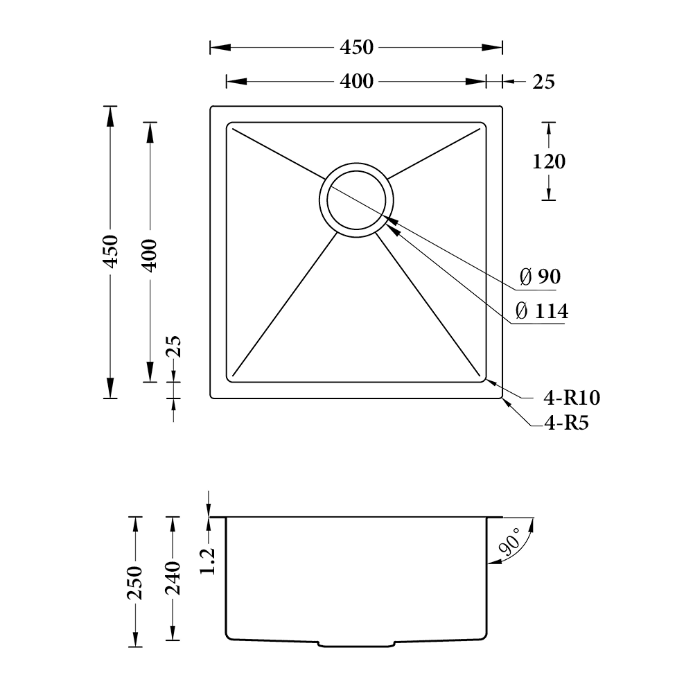 Atlas Single Bowl Sink 450 x 450