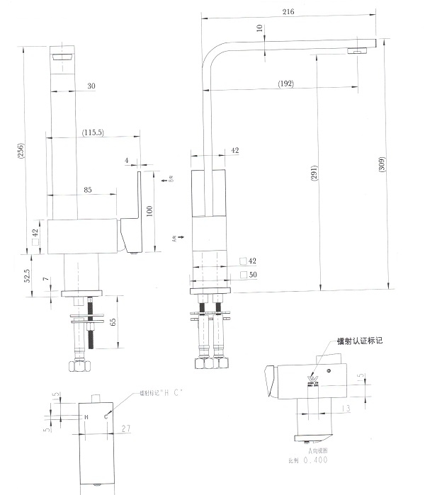Bella Black Square Sink Mixer