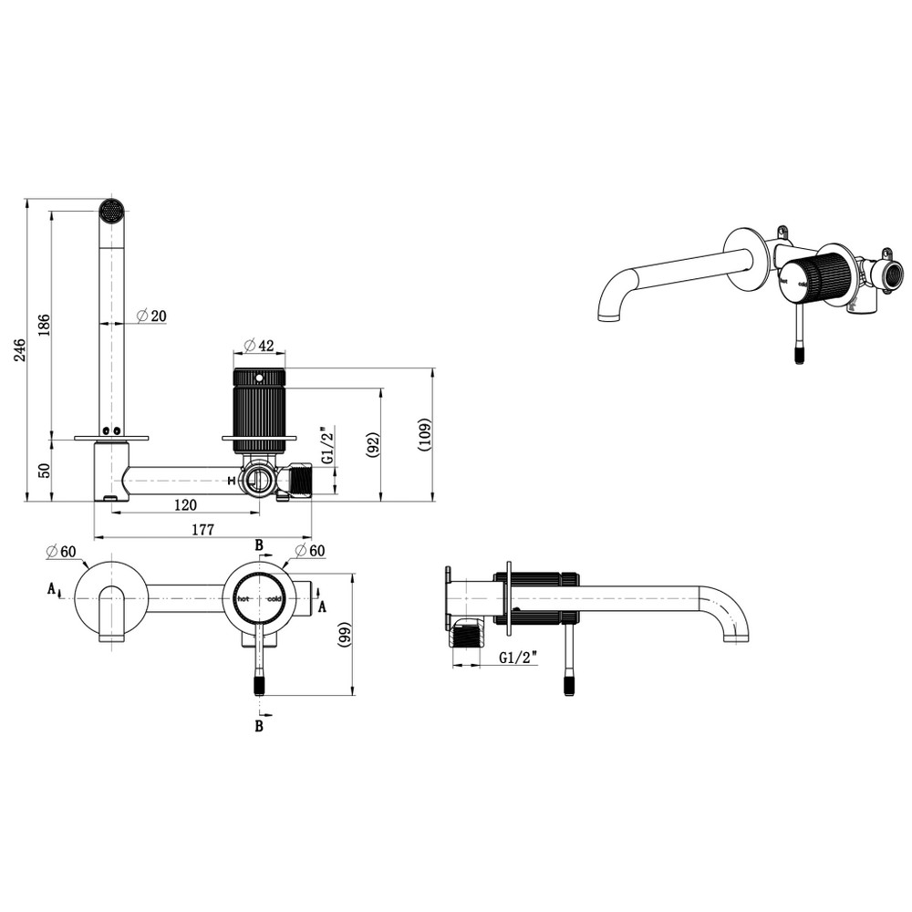 Mica Fluted Wall Spout Combo - Double Plate