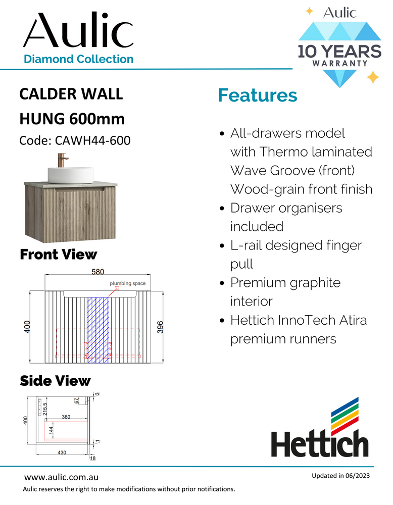 Calder Wall Hung Vanity w/ Stone Top