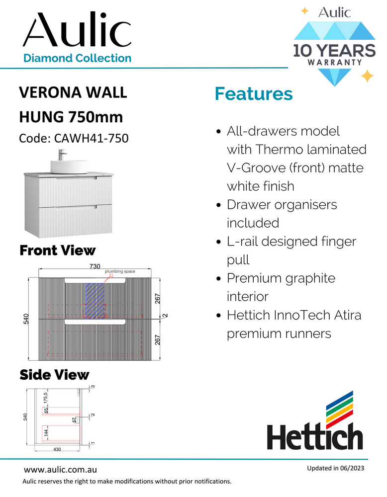 Verona Wall Hung Vanity w/ Ceramic Top